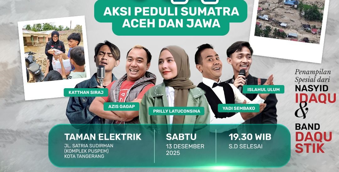 Tangerang – Badan Amil Zakat Nasional (Baznas) Kota Tangerang, Pemerintah Daerah (Pemda) Kota Tangerang, Dewan Perwakilan Rakyat (DPRD) Kota Tangerang, Majelis Ulama Indonesia (MUI) Kota Tangerang, dan Dewan Masjid Indonesia (DMI) Kota Tangerang menggelar Aksi peduli korban bencana Sumatra dan Jawa, aksi ini diselanggarakan pada hari sabtu, 13/12/2025 yang bertempat di Taman Elektrik (komplek Puspem) Kota Tangerang JAM 19.00 – selesai dengan tema “ KONSER AMAL: AKSI PEDULI SUMATRA ACEH, DAN JAWA.